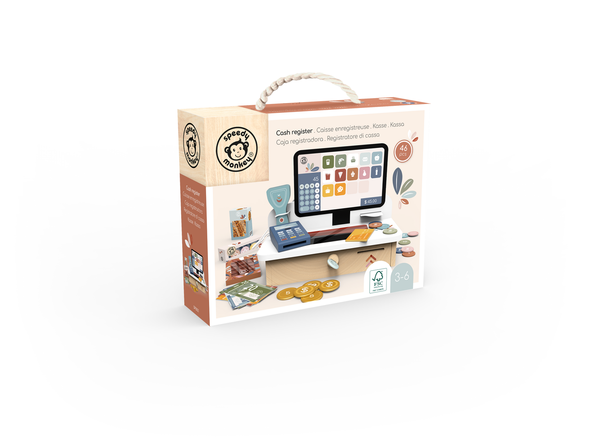 Spark imaginative play and early learning with this beautiful wooden cash register, designed to inspire creativity and teach realâlife skills. Perfect for children aged 36 months and up, this highâquality pretend play toy helps little ones explore numbers, counting, money skills and roleâplay in a fun, handsâon way.