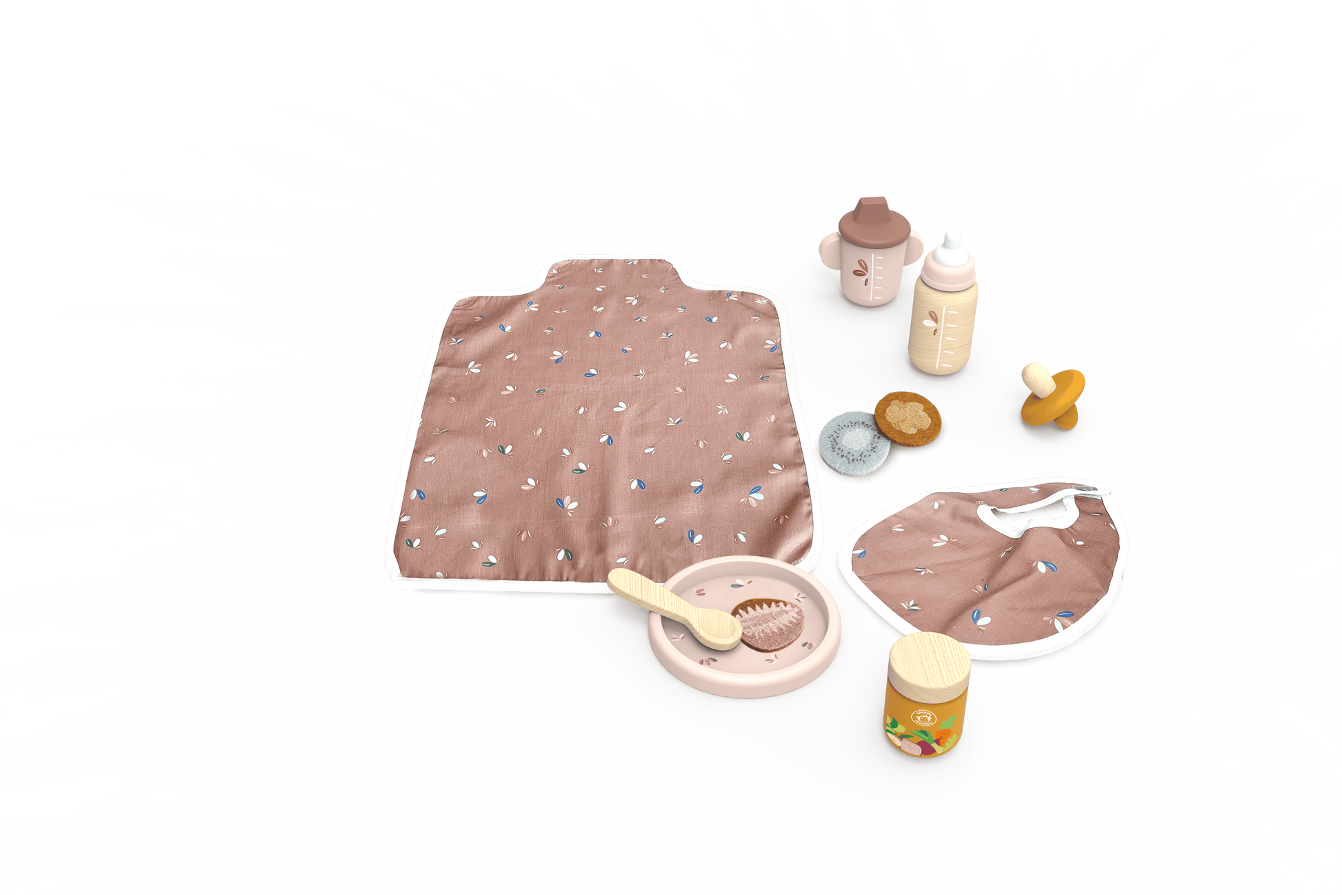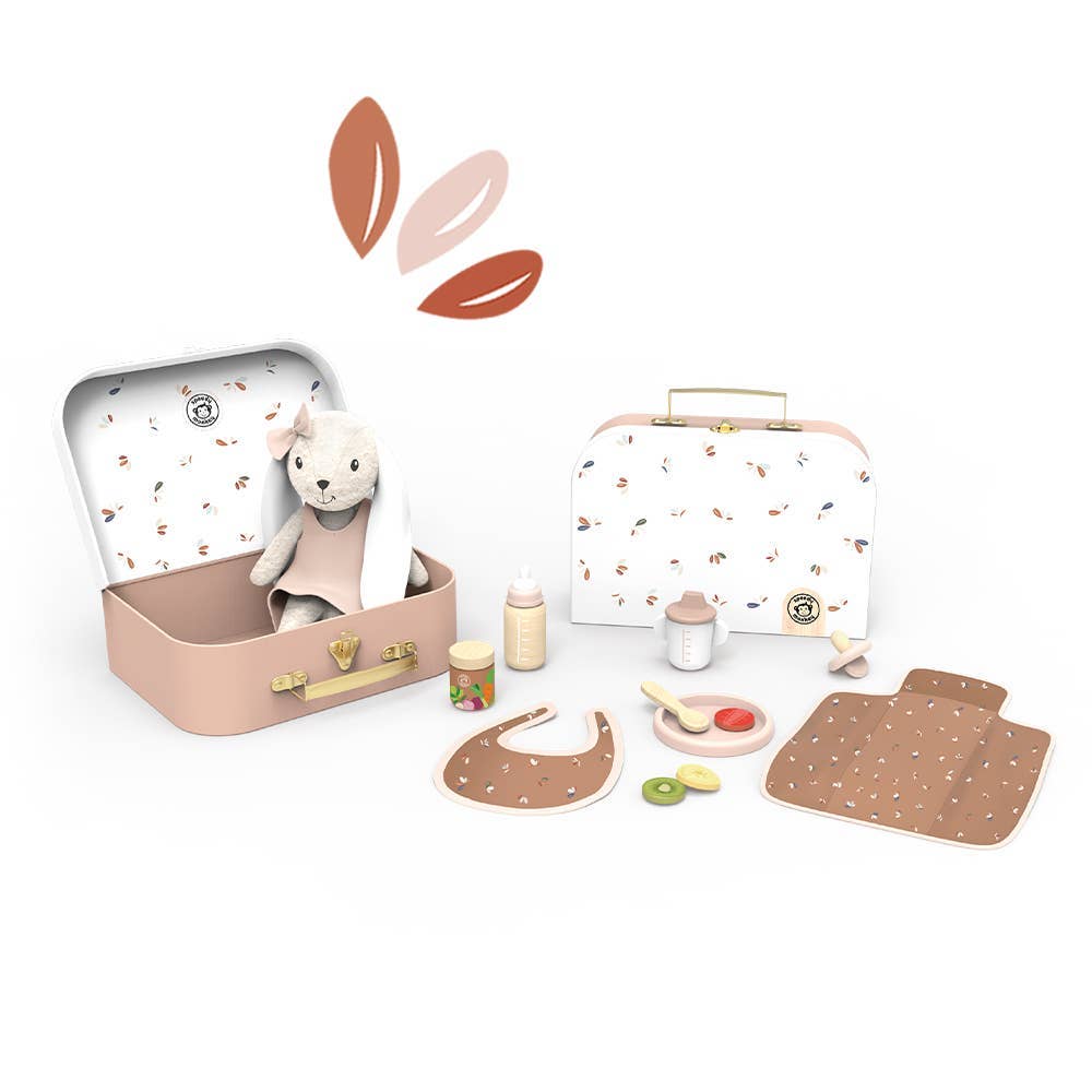 Explore the enchanting world of imaginative play with our My First Doll Set. Ideal for children aged 3 and above, this delightful set is designed to spark creativity and nurture early role-playing skills. Let your little one's imagination soar as they engage in hours of interactive play with this charming doll set. Crafted from high-quality wood, this set is not only durable but also safe for your child. Includes rabbit doll, baby meal accessories, bib and diaper changing pad.